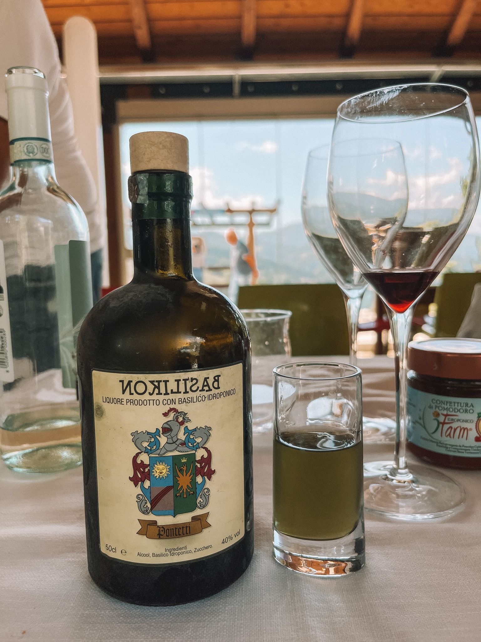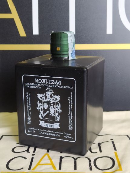 Liquore ottenuto per infusione a freddo di foglie di basilico idroponico in alcool etilico al 96%, formato da 500 ml. Prodotto in maniera artigianale da ricette tipiche del Cicolano.