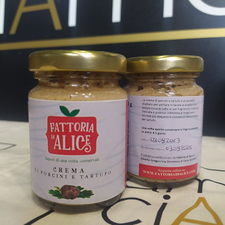 Ingredienti: Salsa porcini 60%, tartufi 10%, olio di semi di girasole, sale, pepe