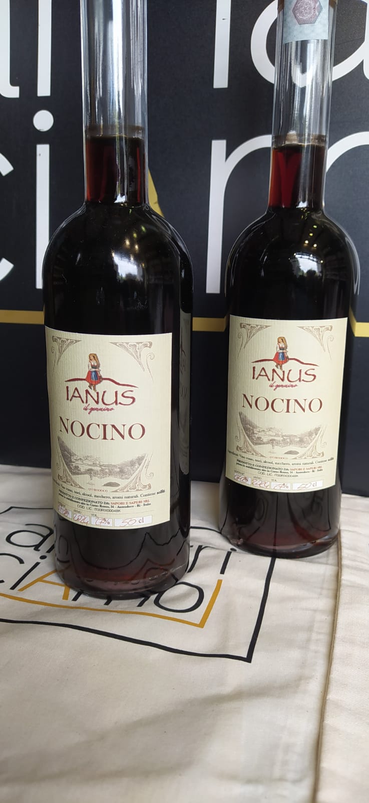 Liquore di nocino ottenuto dall’infusione di mallo di noci in vino Rosso Piceno, alcool puro e zucchero.